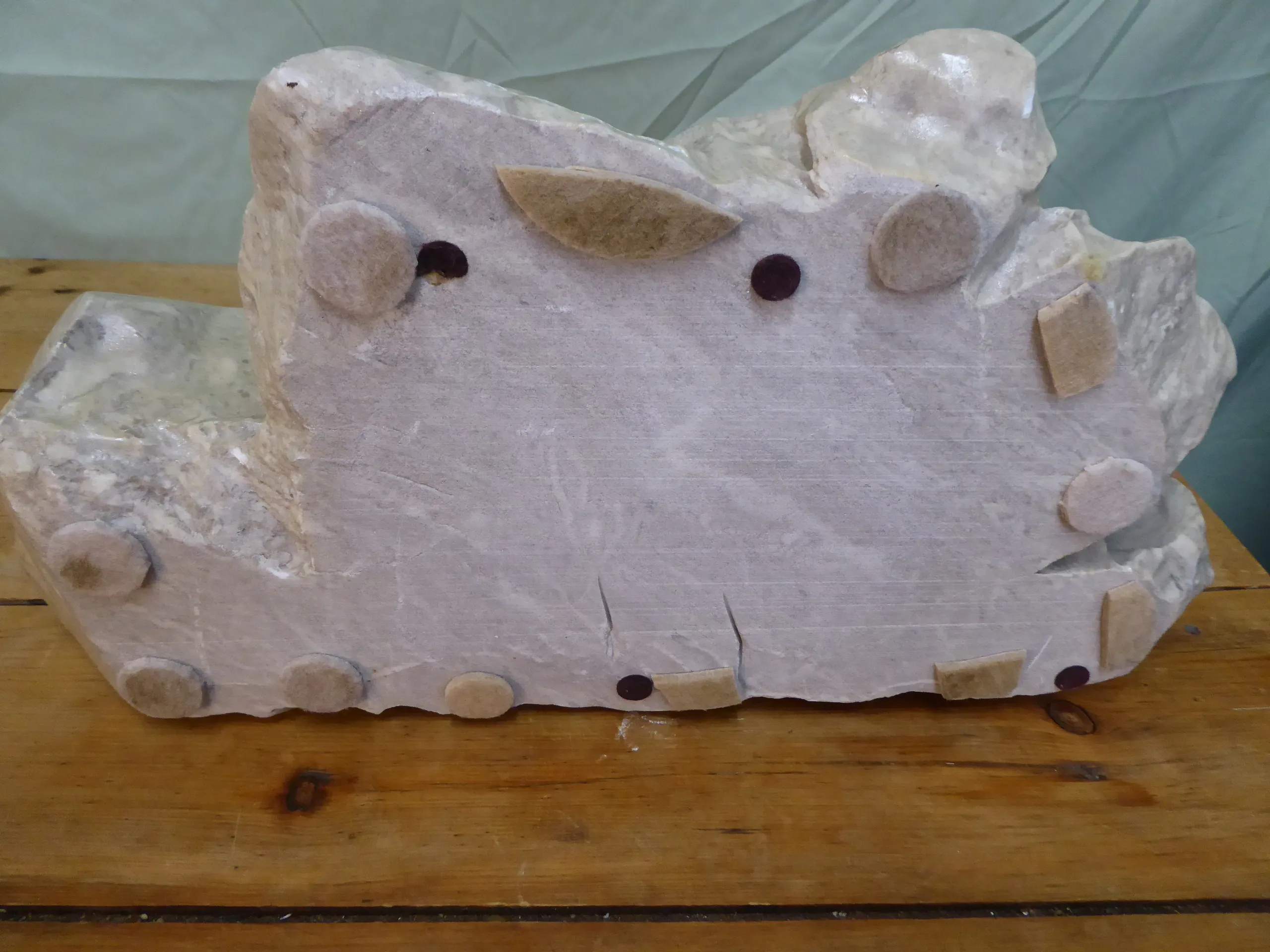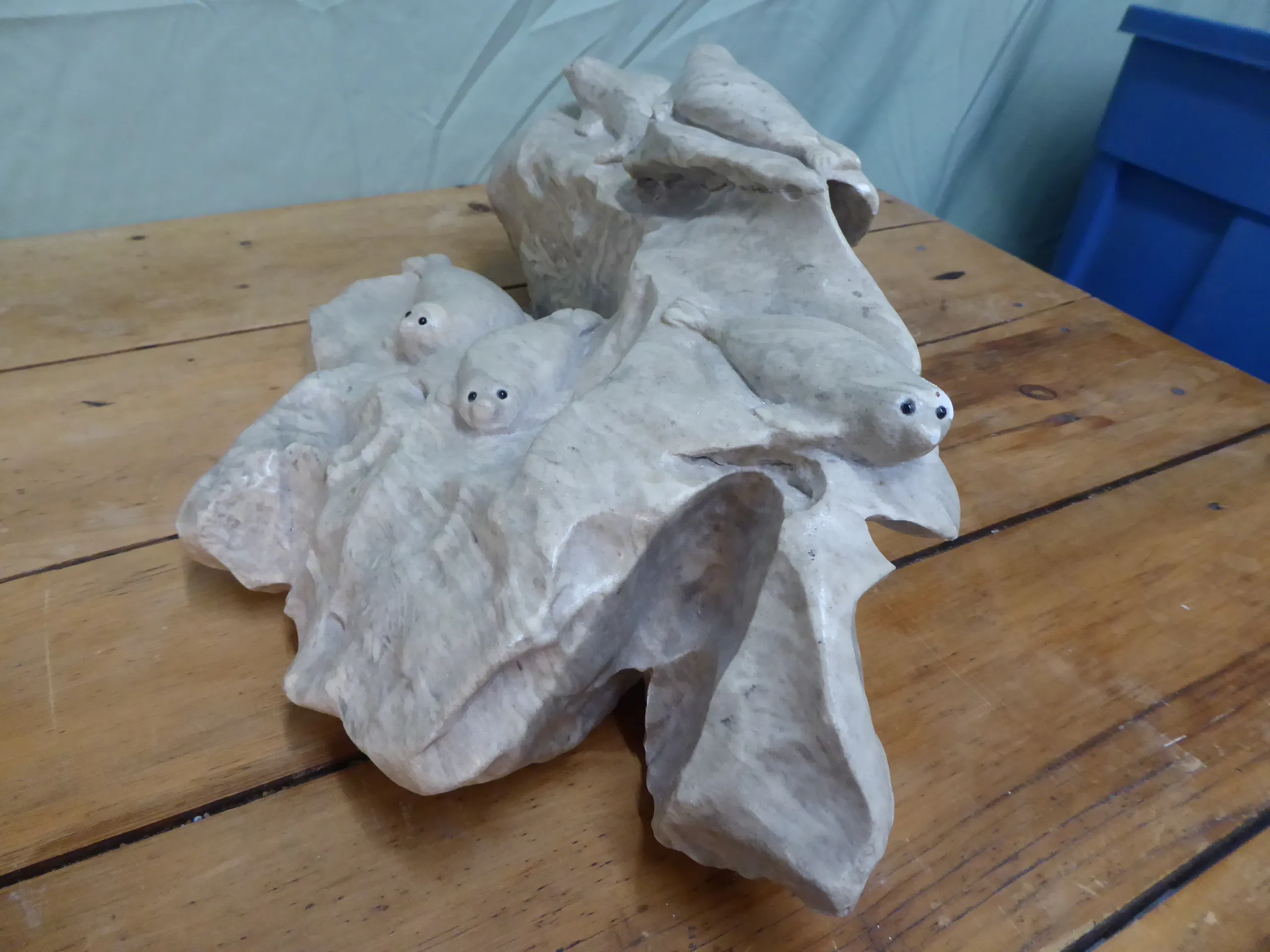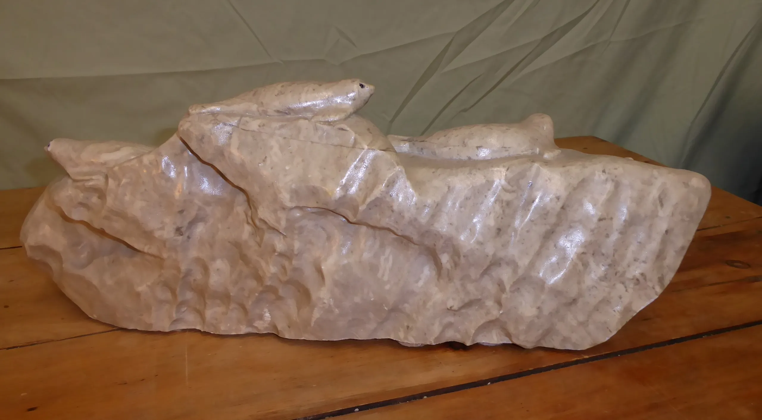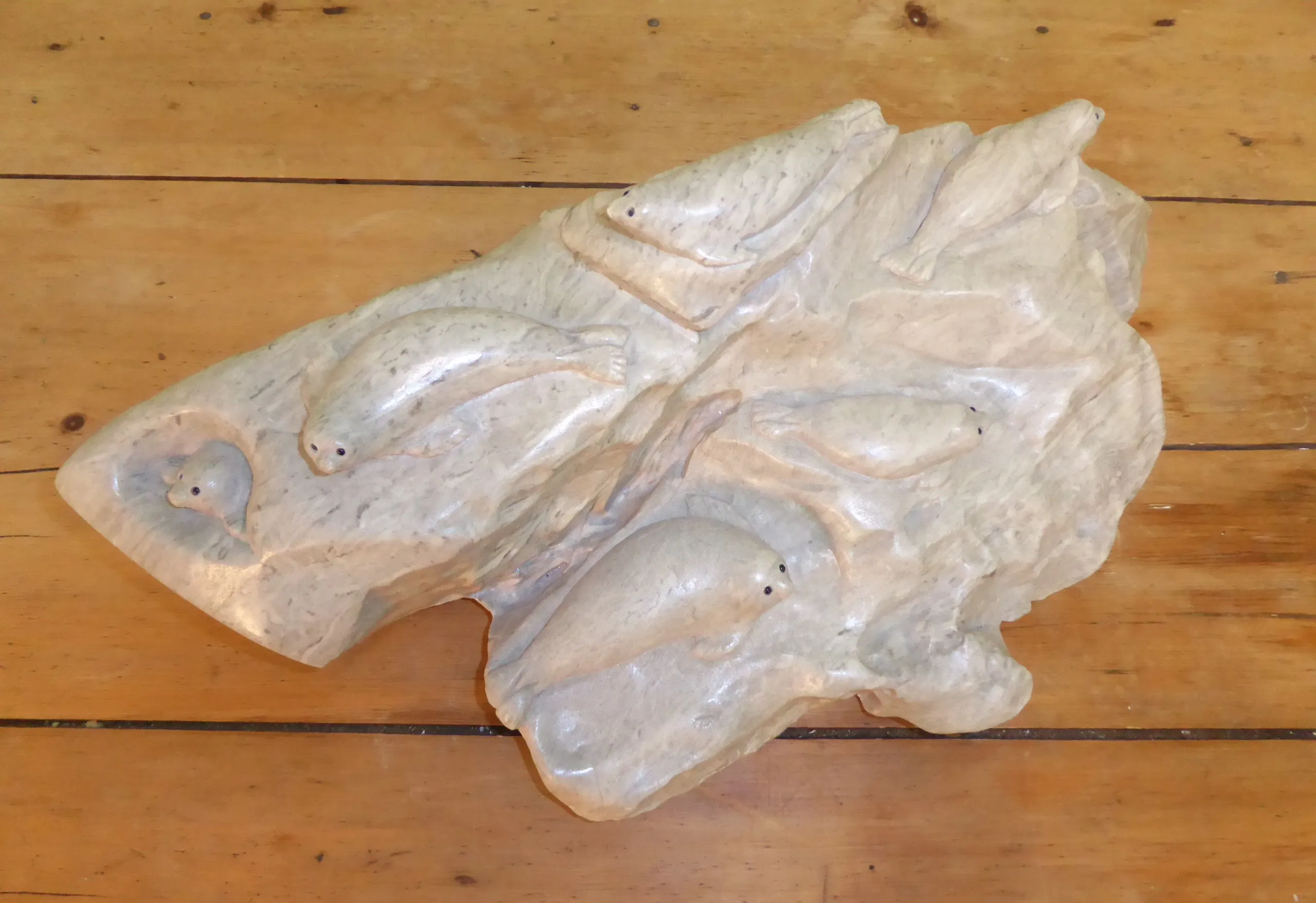 Daniel Renaud - Banquise avec 6 phoques - Sculpture en pierre d'albâtre - Dimension 7¾"H x 20" x 10"