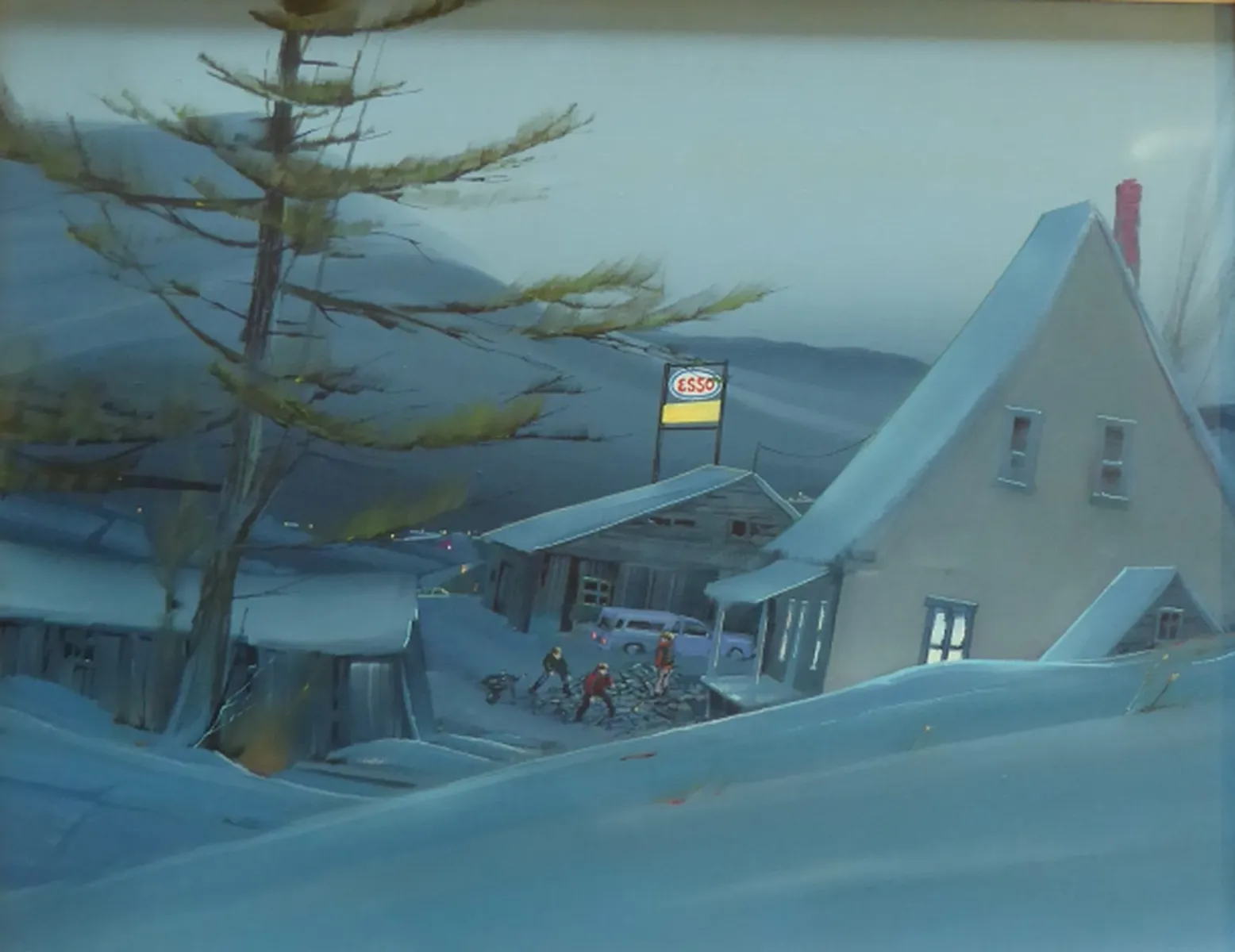 André Philibert - La corvée - Acrylique sur toile - 22"H x 28" - (encadrement d'origine) - Bonne condition